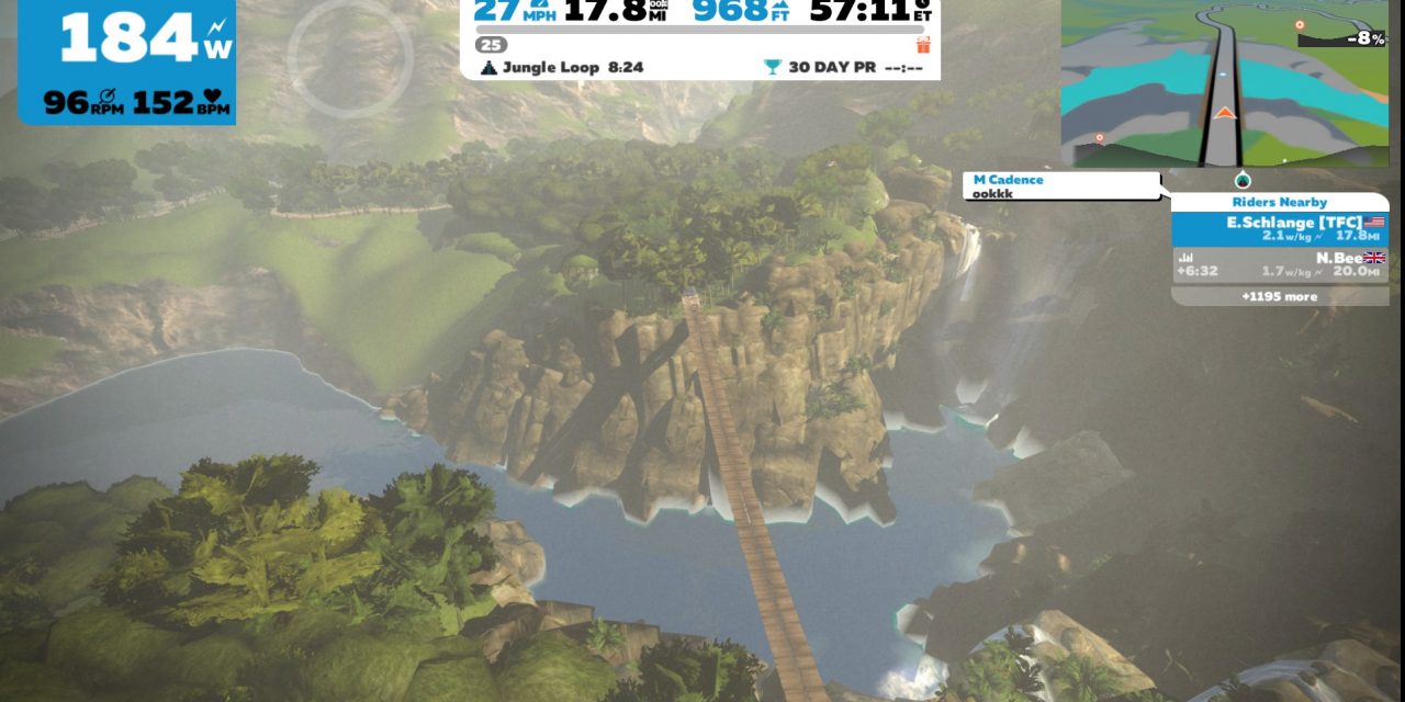 Zwift er i en litt annen liga. Her er det gameification for alle penga. Du kan gjerne trene alene, men hele greia er bygget opp rundt sosial trening og konkurranse.